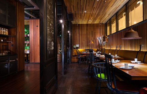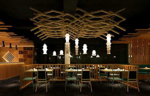 上海辦公室裝修公司案例:本案展現生活充滿熱情這一設計理念。將餐廳設計成為能給客人提供一種味覺與視覺相結合的美食探險的空間。