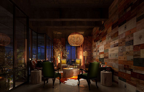上海裝修公司案例:在空間設計中,以歸本主義為設計理念,采用水泥、銹鐵、木頭等自然材料的相互糅合來創造純粹的感受。
