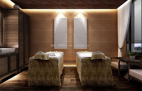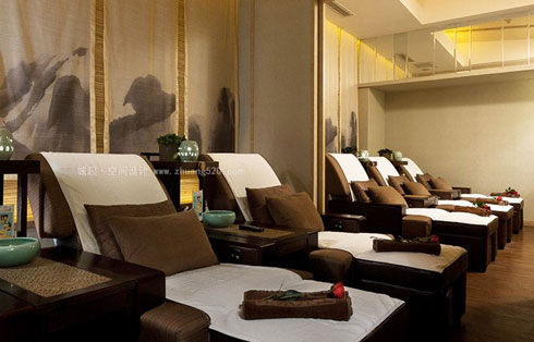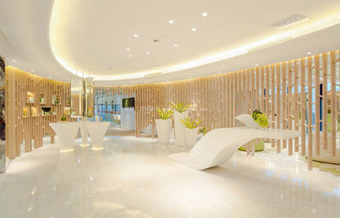 上海辦公室裝修公司案例:日式風格的養生館,以舒適幽靜為原則,追求精致靜雅的格調和氣氛。