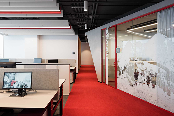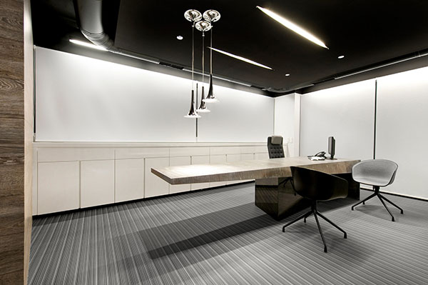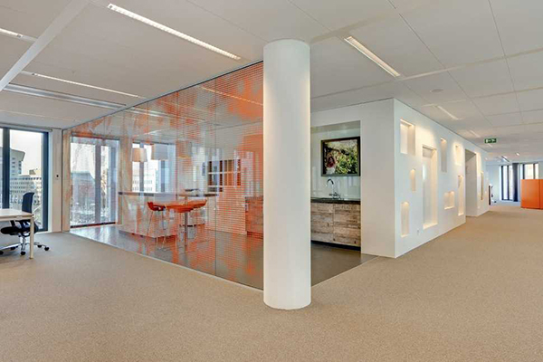 在走廊的墻壁上,您可以采用與辦公室裝修顏色相同的乳膠漆或壁紙。如果走廊溝通的兩個(gè)空間色彩不同,原則上走廊墻壁的色彩與面積大的空間相同。辦公室裝修地面要求采用防水、耐摩擦、抗腐蝕、利清潔的材料鋪裝。如釉面地磚或馬賽克等,都是較為理想的地面辦公室裝修材料。用釉面地磚鋪設(shè),最好選擇有霧面防滑的品類,以免地面過滑,容易使人摔倒。