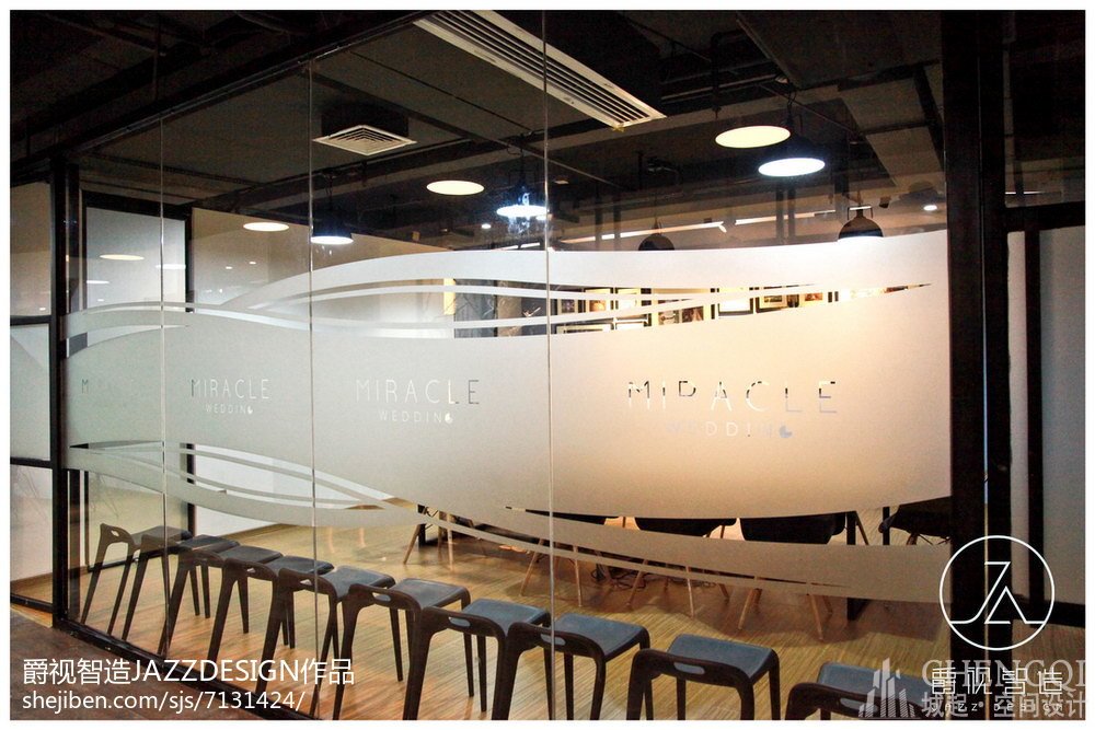本案重視對光線、視線、動線的規劃:由于客戶的使用情況,會議室放在了采光最不好的地方,為了彌補采光的不足,我在隔墻上做了兩個對稱的豎向采光口,用磨砂