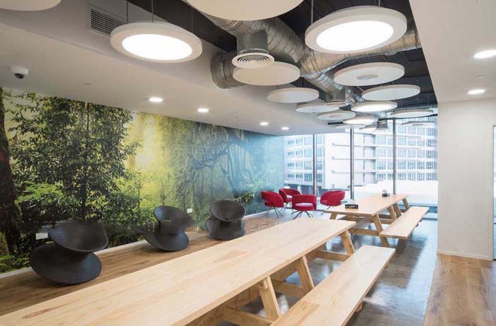 辦公室休閑區作為員工小憩或者休息的一個場所,設計不要過于正式和拘謹,所以加一些植物的點綴會讓人感覺更加舒適,打造出一個更加溫馨的氛圍。