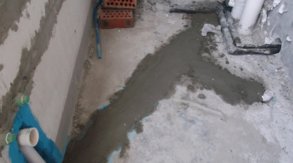茶水間的排水管在增設或移位時最容易引起滲漏,君靈規定了開槽的最大深度,并且在開槽處先刷防水,確保地面得到完全的保護。