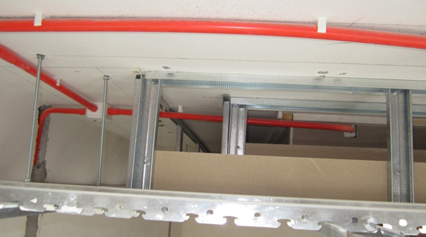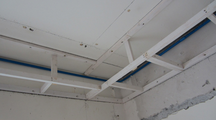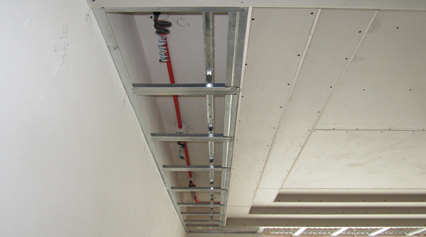 在某些特殊造型需要使用木龍骨時(shí),外表層將全面涂刷膨脹型防火涂料,它在受熱時(shí)分解生成泡沫狀,在表面形成保護(hù)層,隔絕與空氣的接觸,使火焰熄滅。