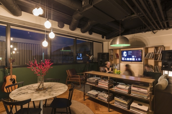 秉承“手工藝人和音樂鑒賞家”的公司文化風格,設計師將重點放在突出真實準確這一特性上,人們可以從那人字形地磚、回收木材定制而成的大門、以及巧妙的磚砌造型上看出他們的嚴格謹慎和一絲不茍。設計師和建筑師通力協作,在改進功能、保質保量完成項目的同時,盡可能的避免一切不必要的開支。這間新辦公室不僅鼓舞人心,而且為公司的快速增加和促進員工之間的溝通,起到了相當重要的作用。
