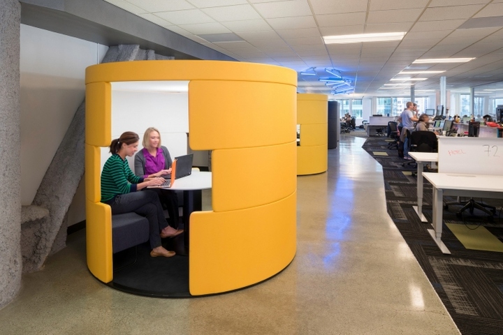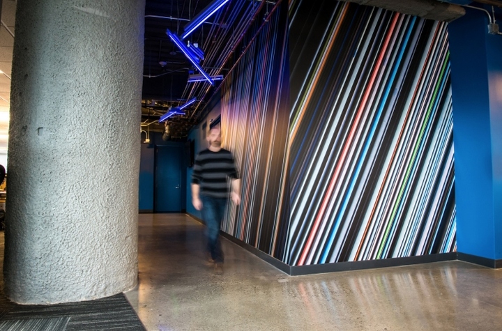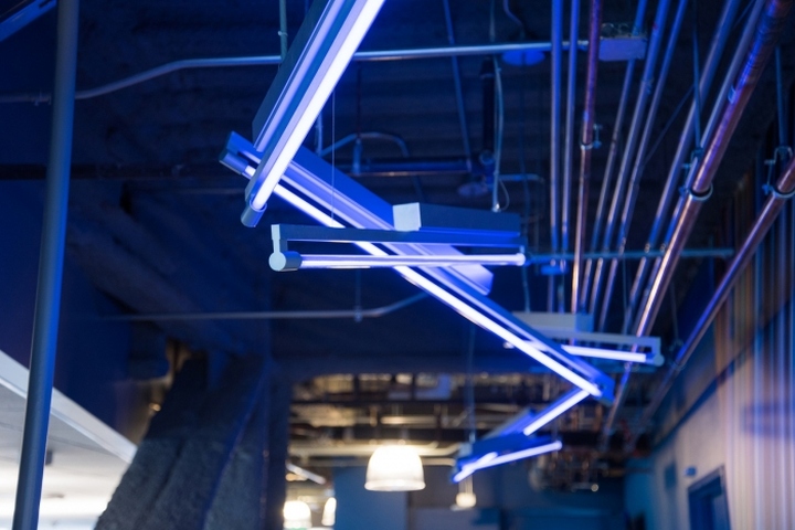 整個項目分為三個部分,代表著工作流程的不同方面——印象,互動性和創造性。首先,第一部分,是由多個膠合板桌子打造的開放式空間格局,可用于群體工作及項目溝通。同時設計師從辦公空間延伸出大陽臺(陽臺裝修效果圖),使員工產生突然想從封閉的辦公空間逃離的欲望。第二部分是“印象空間”,其設計打動了所有的來訪者,公司創始人的圖像從天花延伸到墻面、地板,揮舞著一個大的鉛筆模型。第三部分,互動區域包含休息區及正式的談判區。舒適的家具和房間裝飾提供了思想交流和放松的氛圍。會議室內部更加正式,用清新的綠色打造,后面隱藏著一個黑色墻壁的走廊(走廊裝修效果圖),但通過透明的圓孔,可以看到里外空間發生的事情。