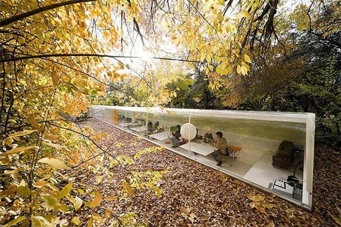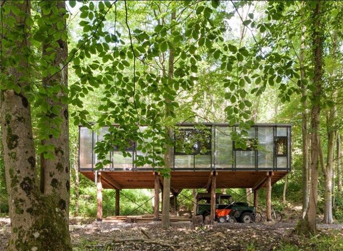 林中辦公室——英國建筑事務(wù)所Invisible Studio的辦公室,采用好似船艙的設(shè)計。這個辦公室占地面積大約600平方英尺(約合55平方米),座落于倫敦西部巴思附近的一個偏遠森林。在設(shè)計上,這座辦公室采用來自周圍森林的天然木材,建有一條直通入口的高架通道。