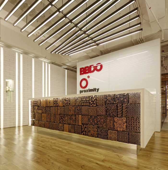 從工作表開始,地板、家具、燈、墻等概念,每一個地區(qū)都有一個獨特的白色為主色調(diào)的設計理念。大堂里更是放置一個波浪的形式,讓人們進入辦公空間。除了這些裝飾元素以外,以蠟染等印花元素為主題的接待區(qū)域會被職員所接受。BBDO在印尼具有地方特色的設計使得能立足全球。下面小編帶你領略BBDO的裝修實景圖吧。