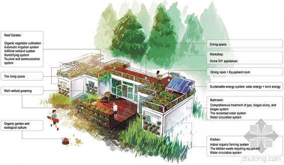 該生菜屋項目必須滿足建造時間短、可回收、面積利用率高這些條件,因此我們采用了集裝箱模塊房作為原材料,它是利用集裝箱本身特性由工廠制定出箱體結構、門窗、屋頂、地板、墻面等系數自行預制生產。集裝箱模塊房現已形成完善的生產施工模式,因此前期預置和現場施工都由廠家配合完成。在廠家生產好的預制模塊房運到場地后進行吊裝,每個單體集裝箱模塊房大概需要半小時時間,集裝箱模塊房之間的對接處進行防水橡膠安裝,最后進行樓梯和室內門的安裝。隨后,業主親自完成了能耗配套設備以及綠色種植的安裝。六個集裝箱模塊基礎價18萬元,改裝、運輸和安裝費是3.8萬元,共計21.8萬元。
