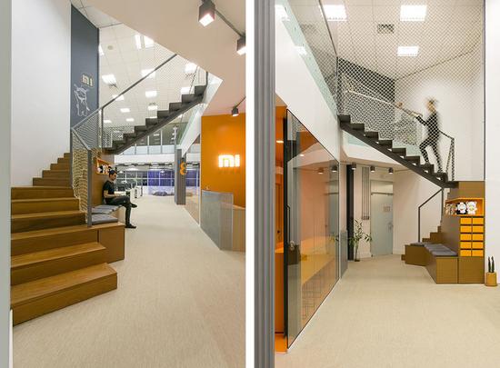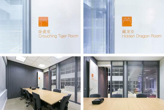 小米logo上標志性的橙色也在整體空間中得到大面積運用,希望能夠借此喚起員工對公司文化的歸屬感。而即便是在巴西辦公室,中國元素也隨處可見,比如象棋盤,比如辦公室名稱的命名:藏龍室、臥虎室以及元陽室等等,在主辦公區(qū)一側(cè)的白色墻壁上,「永遠相信好的事情即將發(fā)生」的激勵語也是用漢字進行表達。