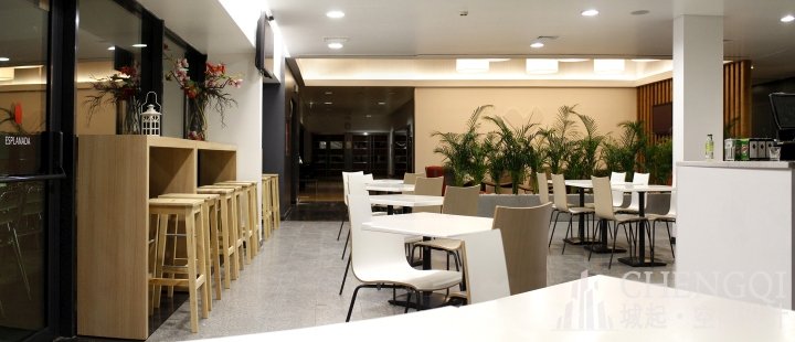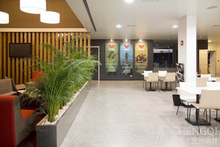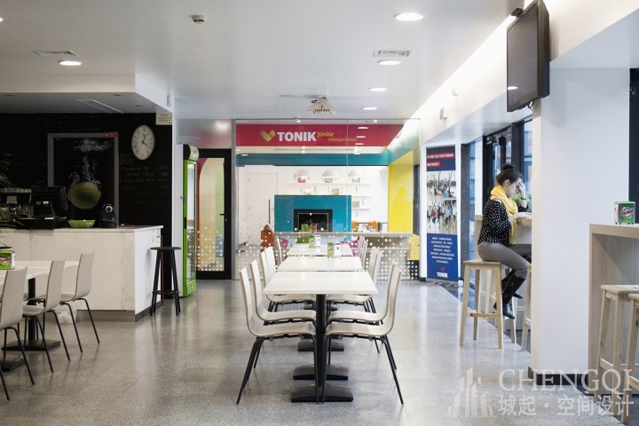 對于這個位于里斯本優質地段之一的TONIK健康俱樂部來說,他們最初的改造設想很簡單,那就是重做下接待處和門廊休息區的樣子布局。客人要經過接待處才能到達俱樂部,這個絕佳的地方不容浪費,因此,設計師在這里重新設計了一個等候區,和一個Tonik產品售賣處。在接待處驗證會員信息之后往里走進來,就來到了門廳休息區,這里有各種會員服務、咖啡吧和一個休息處。
