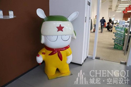 小米的吉祥物是米兔,這家伙可是辦公室的常客,在哪都能見到,它帶著雷鋒帽和紅領巾,還穿著李小龍的“戰袍”,手中握著雙截棍。